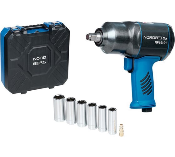 Пневмогайковерт ударный 1/2", 1300 Нм, с глубокими головками в кейсе NORDBERG NP14101K